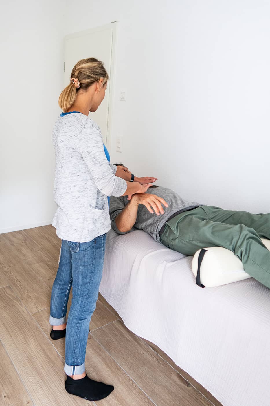 Ensuite on passe à la phase proprement parlé de la kinésiologie. Le travail se fait dans une position confortable pour vous, que ce soit couché sur une table de massage, assis ou debout. Vous restez habillé(e) tout au long de la séance.